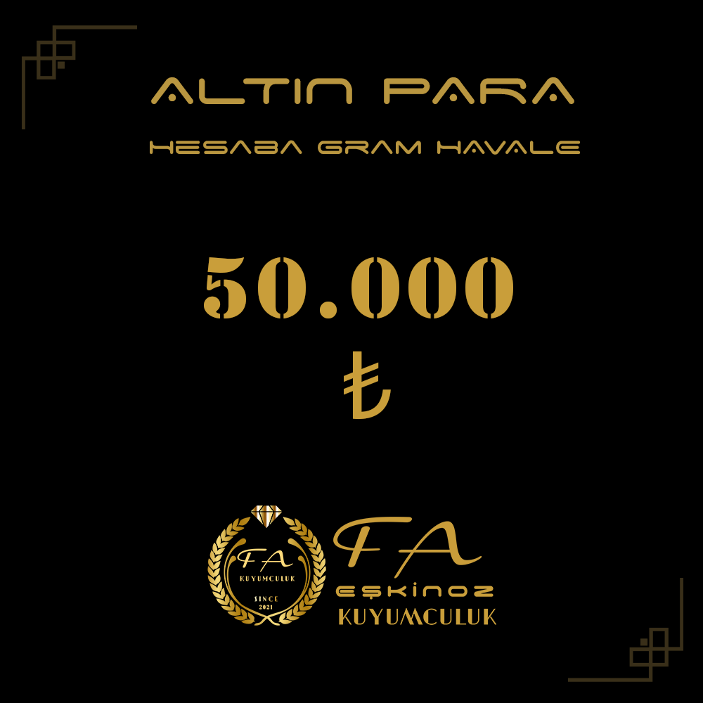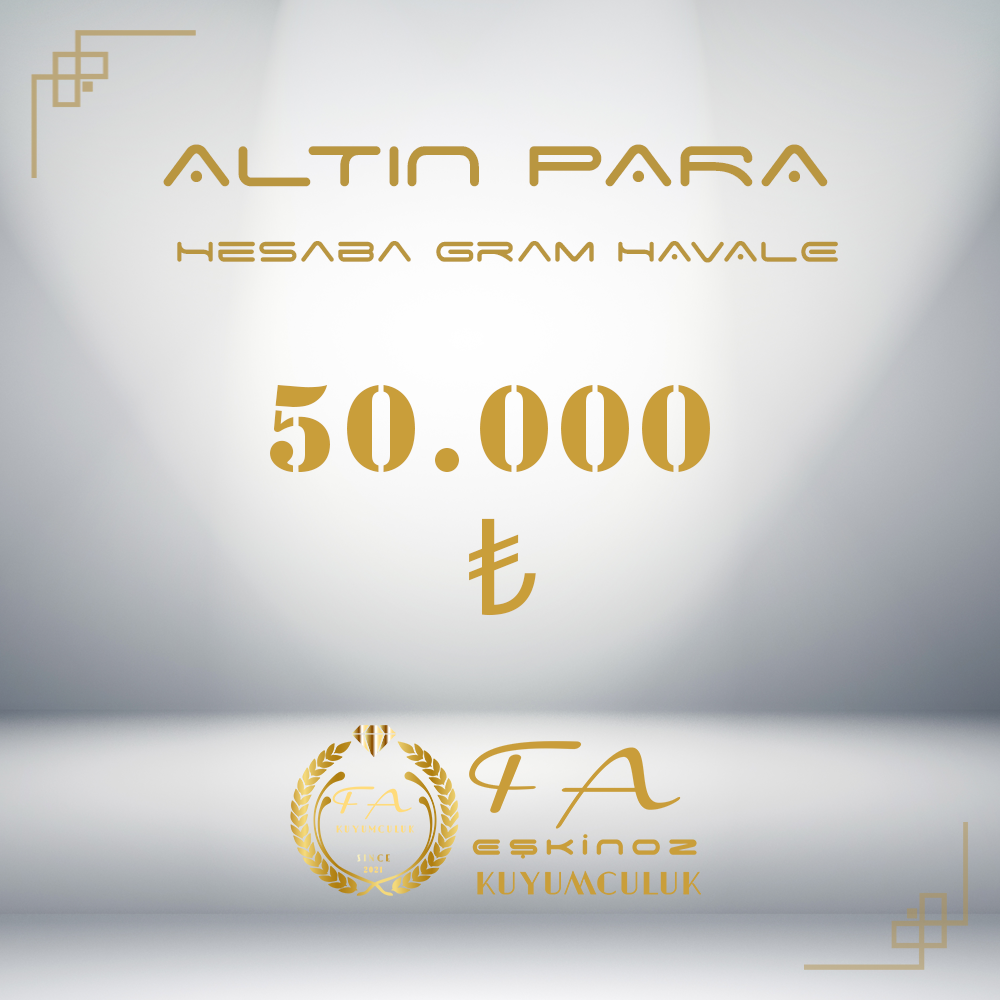 Altın Para : Nakitve Kredi Kartınız ile Altın Hesabınıza yapılan altın transfer işlemidir. Dilediğiniz TL miktarında Karşılık gelen tutarda hesabınıza Gram altın Transferi yapılmaktadır. Dilerseniz Hesabınız yerine fiziki olarak da mağazamızdan karşılık gelen gram altını teslim alabilirsiniz.